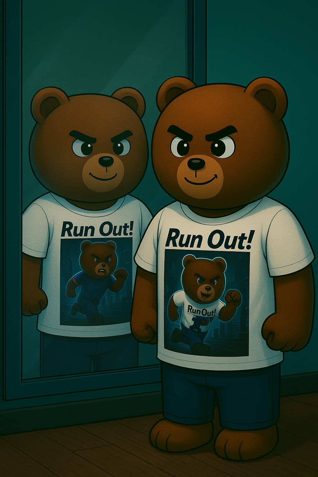 “Run Out!” 티셔츠의 주인공의 이름은Nimble Bear,